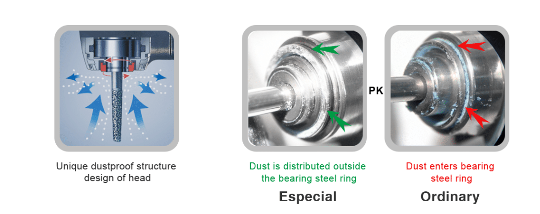 Unique Anti-suction and dust-proof structure: This features makes it more difficult for dust to enter and greatly improves the service life of the handpiece bearings.